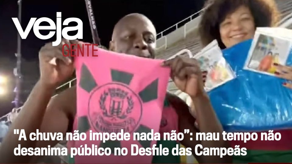 A chuva começou a cair na Sapucaí, mas nem isso tirou o brilho do Desfile das Campeãs. Neste corte da live de VEJA Gente, Giovanna Fraguito conversa com torcedores da Mangueira no setor 1, que enfrentam o tempo fechado com capa, almofada e muita emoção. “A chuva não impede nada”, diz um dos foliões, que correu para a avenida para ver a verde e rosa mais uma vez. Entre livrinhos, improvisos e arquibancadas enchendo, o clima é de festa e paixão pelo maior espetáculo da Terra.