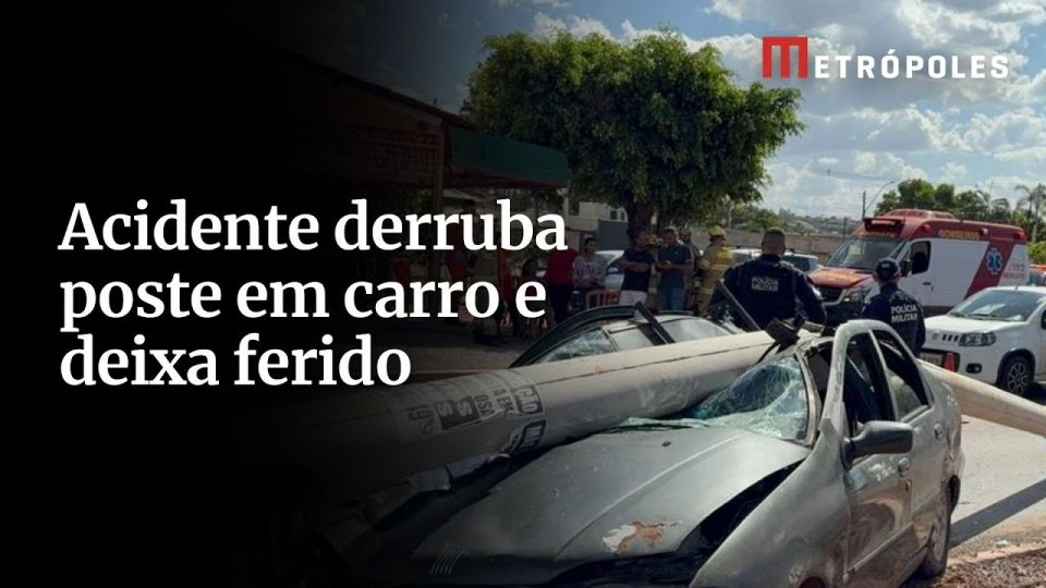 Acidente derruba poste em carro e deixa ferido