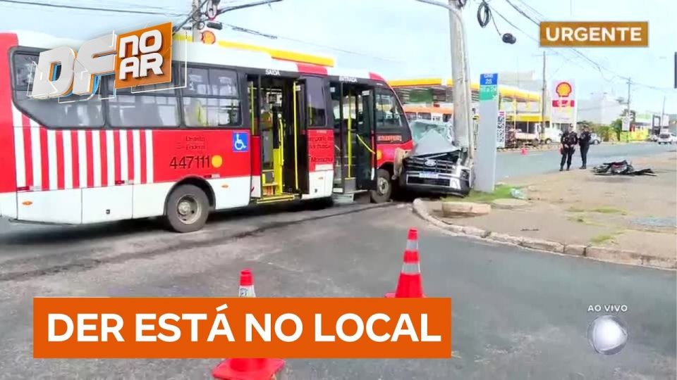 Acidente entre ônibus zebrinha e carro destrói poste e provoca lentidão na Samdu Norte | DF no Ar