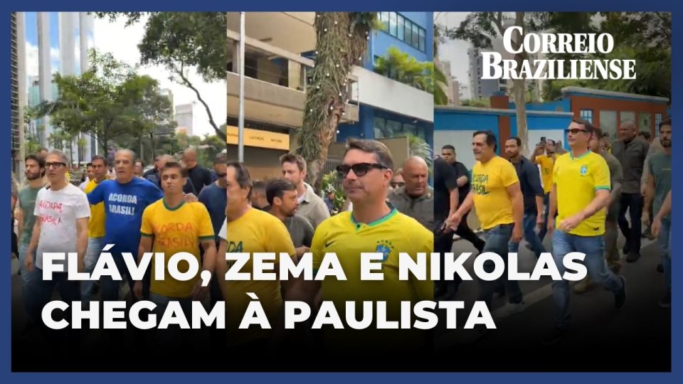 “ACORDA, BRASIL”: VEJA A CHEGADA DE FLÁVIO BOLSONARO, ZEMA E NIKOLAS À AVENIDA PAULISTA