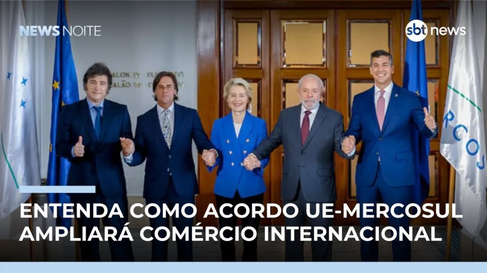 O acordo entre União Europeia e Mercosul envolve 722 milhões de consumidores e um mercado com Produto Interno Bruto de 22 trilhões de dólares. O tratado prevê uma redução tarifária superior a 4 bilhões de dólares e um aumento de até 39% nas exportações europeias até 2040. Para analisar os impactos, o Jornal do SBT News conversa com o advogado Daniel Toledo, especialista em direito, negócios internacionais e macroeconomia. Saiba todos os detalhes no Jornal do SBT News.