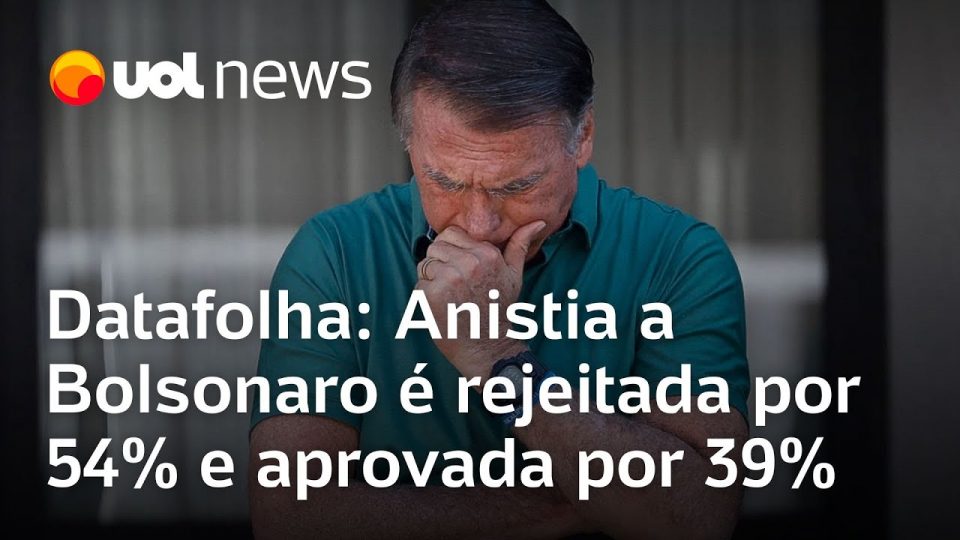 A maioria dos brasileiros é contra o Congresso Nacional aprovar uma anistia para livrar o ex-presidente Jair Bolsonaro (PL), condenado pelo STF (Supremo Tribunal Federal) a 27 anos e 3 meses de prisão por tentativa de golpe de Estado e outros quatro crimes. Rejeitam a ideia 54%, ante 39% que a defendem.