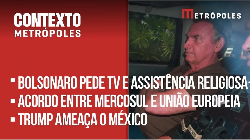 Na edição de hoje você vai ver que o ex-presidente Jair Bolsonaro pediu ao ministro do Supremo Tribunal Federal, Alexandre de Moraes, uma smart tv e assistência religiosa. União Europeia e Mercosul se aproximam de acordo. E o presidente dos Estados Unidos, Donald Trump, ameaçou o México por causa dos cartéis de drogas.