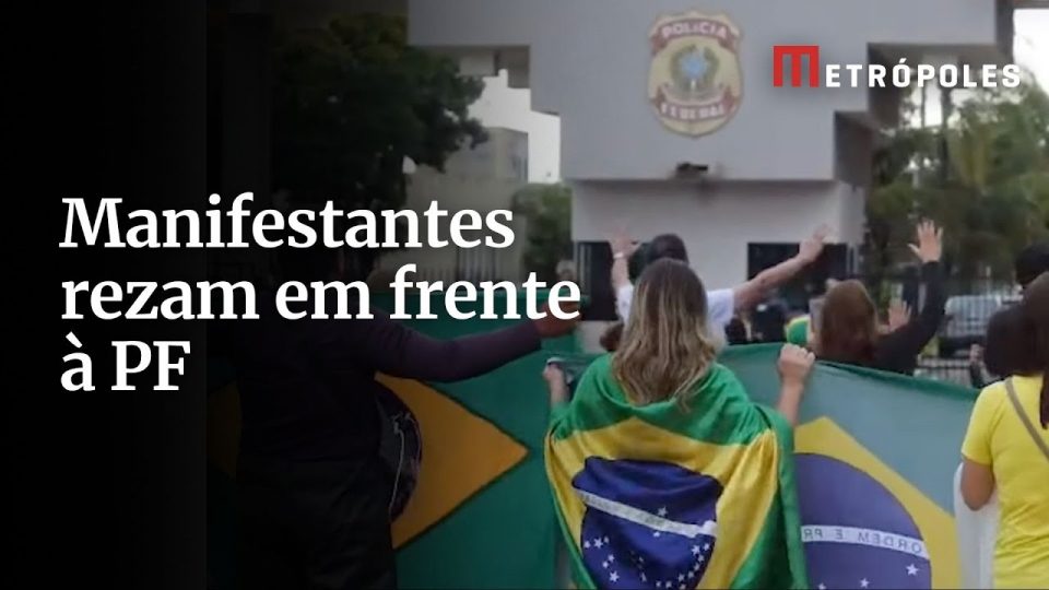 Apoiadores de Jair Bolsonaro fazem orações em frente a Superintendência Regional da Polícia Federal no DF, onde o ex-presidente está em prisão preventiva