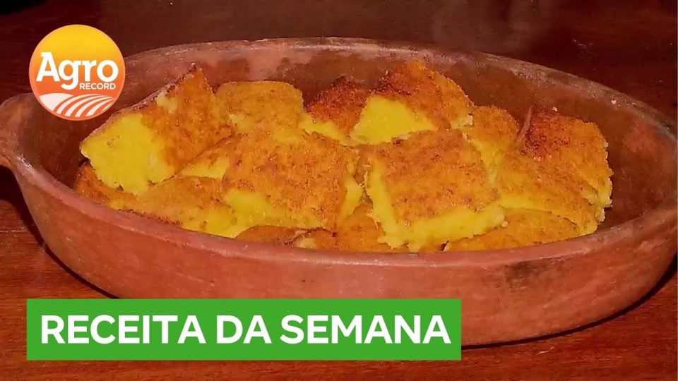 A empresária rural Telma Lopes Machado, da Fazenda Babilônia, apresenta a receita do mané pelado, um bolo cremoso feito com 1,5 kg de massa de mandioca ralada, 600 g de queijo ralado, 600 g de açúcar, cinco ovos caipiras e outros ingredientes.