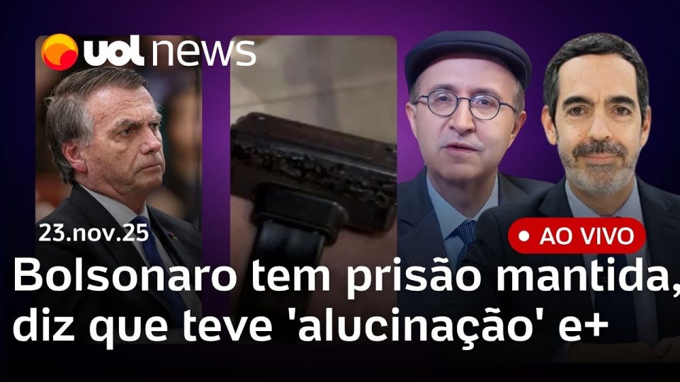 No UOL News 2ª Edição deste domingo (23): Bolsonaro diz que violou tornozeleira eletrônica porque teve ‘alucinação'; prisão é mantida após audiência de custódia; Michelle visita marido em carceragem da PF e mais notícias.