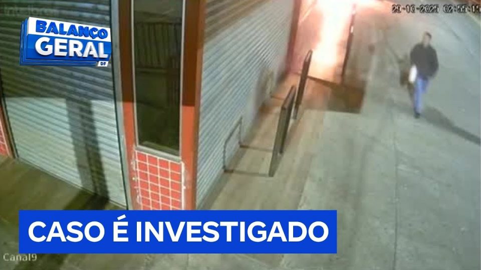 Um homem foi flagrado por câmeras de segurança jogando gasolina e ateando fogo na porta de uma padaria em Ceilândia (DF). O suspeito chegou em uma motocicleta, deixou o veículo em uma rua próxima e se aproximou da padaria com um galão. Após iniciar o incêndio, ele fugiu do local.