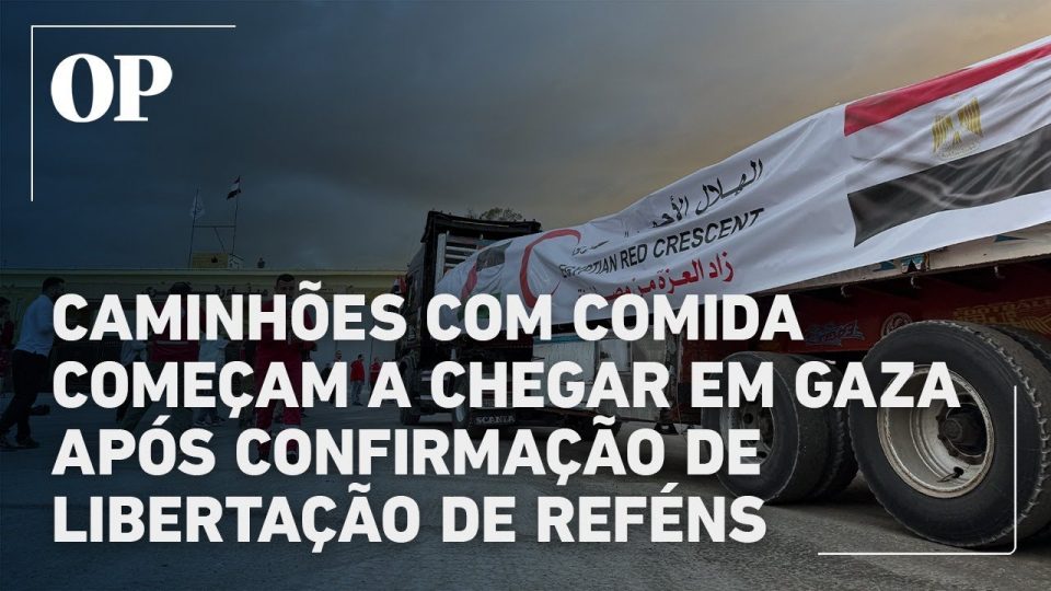 Caminhões com comida começam a chegar em Gaza após confirmação de libertação de reféns