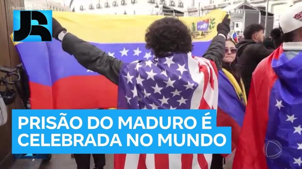 A captura de Nicolás Maduro foi comemorada em diversas partes do mundo. Na principal praça de Madri, na Espanha, teve festa e muita música. Alejandro, que vive há quatro anos no país, estava com as bandeiras dos Estados Unidos e da Venezuela.