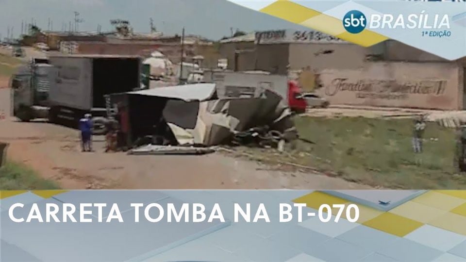 Carga de pneus ficou espalhada na pista após acidente | SBT Brasília 1ª Edição