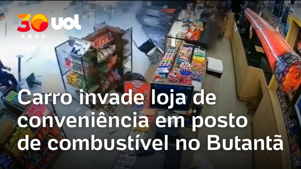 Uma mulher ficou ferida após um carro invadir e destruir uma loja de conveniência em um posto de combustível no Butantã, na zona oeste de São Paulo, na tarde desta terça-feira (6).