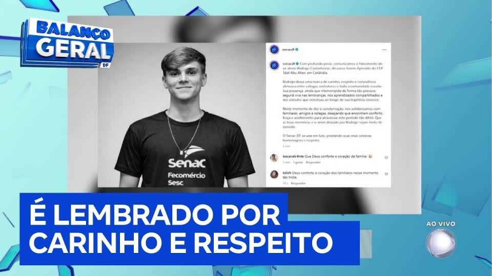 O Senac-DF divulgou nota lamentando a morte de Rodrigo Castanheira, de 16 anos, vítima de agressão em Vicente Pires (DF). O jovem era ex-aluno do curso Jovem Aprendiz. A instituição destacou a marca de carinho, respeito e convivência deixada entre colegas, instrutores e a comunidade escolar. “Sua presença, ainda que interrompida de forma tão precoce, seguirá viva nas lembranças e nos vínculos que construiu ao longo de sua trajetória”, afirmou o Senac.