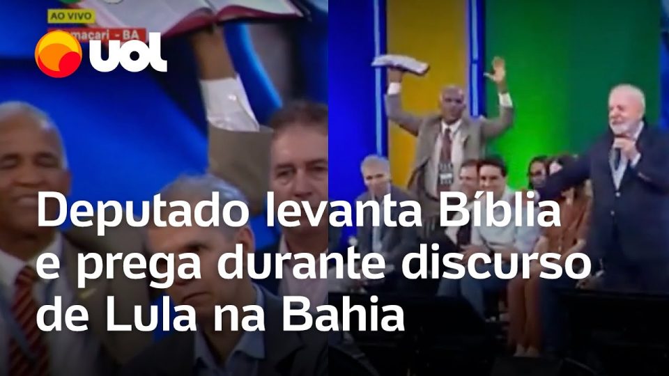 O deputado Pastor Sargento Isidório participou da abertura de uma fábrica na Bahia ao lado de Lula. Durante o discurso do presidente, o político exibiu uma Bíblia.