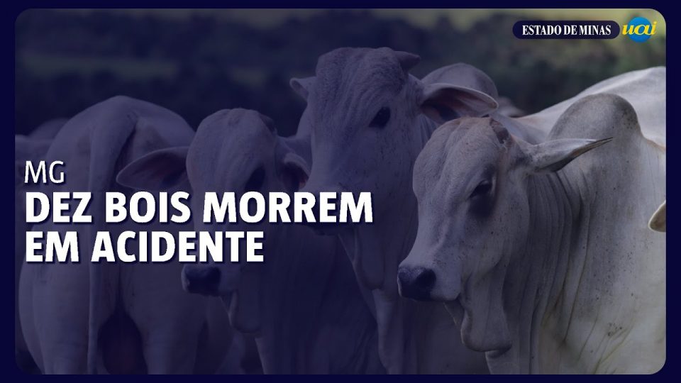Um caminhão boiadeiro tombou na MGC 497 com 65 bois e 10 deles morreram.