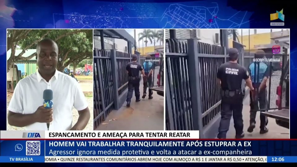 Brasília - DFCidadesDestaquesDF ALERTA – Homem vai trabalhar tranquilamente após estuprar a ex de admin01/01/2026010 Compartilhar0 01/01 – Agressor ignora medida protetiva e volta a atacar a ex-companheira. — Acompanhe outras notícias no DF Alerta De segunda a sexta, às 11h50 TV Brasília (canal 6.1, NET 18/518) Facebook.com/DFALERTA (com transmissão ao vivo) source