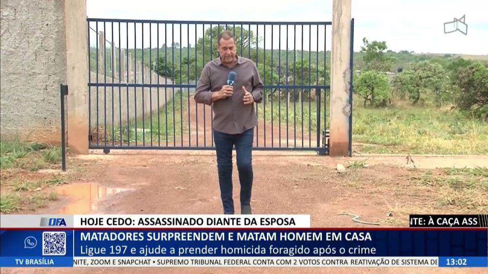 Brasília - DFCidadesDestaquesDF ALERTA – Matadores surpreendem e matam homem em casa de admin20/10/2025012 Compartilhar0 20/10 – Ligue 197 e ajude a prender homicida foragido após o crime. — Acompanhe outras notícias no DF Alerta De segunda a sexta, às 11h50 TV Brasília (canal 6.1, NET 18/518) Facebook.com/DFALERTA (com transmissão ao vivo) source
