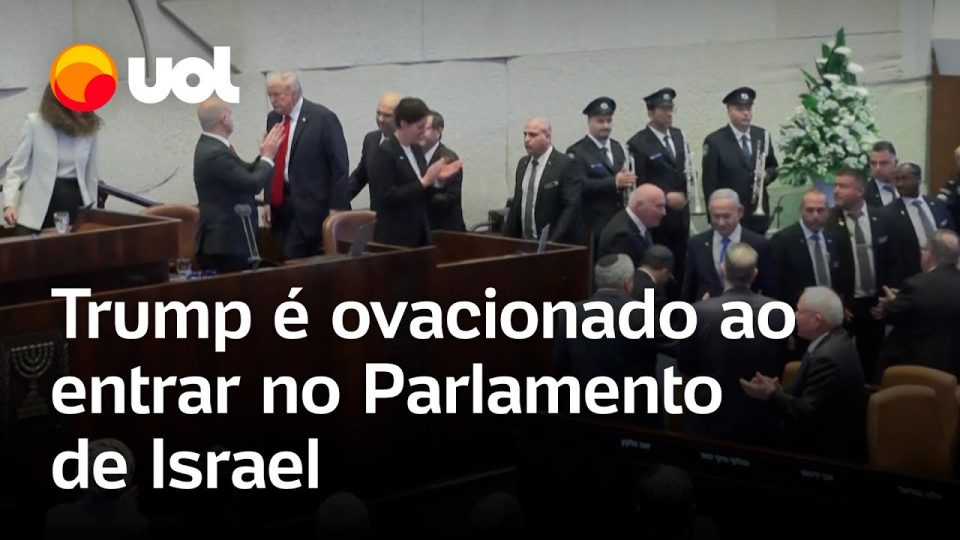 O presidente dos Estados Unidos, Donald Trump, foi ovacionado ao entrar no Knesset, o Parlamento de Israel.