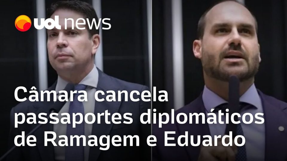 BrasilDestaquesMundoEduardo Bolsonaro e Alexandre Ramagem têm passaportes diplomáticos cancelados pela Câmara de admin22/12/2025011 Compartilhar0 A Câmara dos Deputados cancelou os passaportes diplomáticos dos parlamentares cassados Alexandre Ramagem (PL-RJ) e Eduardo Bolsonaro (PL-SP). #UOLNewsNoite #canaluol source