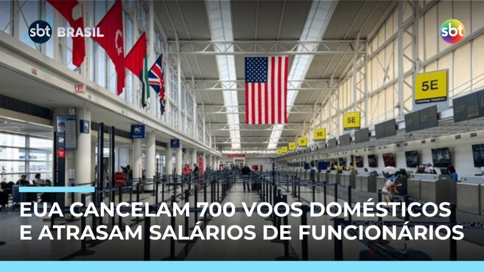 Cerca de 700 voos domésticos nos Estados Unidos foram cancelados nesta sexta-feira devido à paralisação do governo. O problema afetou trajetos para cidades menores, mas voos para capitais seguem operando. A falta de controladores de voo, com salários atrasados, aumenta a expectativa de impactos nos próximos dias. O Congresso tenta votar o orçamento, mas o consenso ainda não foi alcançado. Saiba todos os detalhes no SBT Brasil.