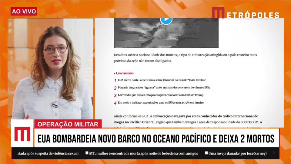 As Forças Armadas dos Estados Unidos realizaram, nesta quinta-feira (5/2), um novo ataque contra uma embarcação em águas internacionais do Oceano Pacífico. Duas pessoas morreram durante a ação militar, segundo informações do Comando Sul (SOUTHCOM), responsável por operações militares na América Latina e no Caribe.