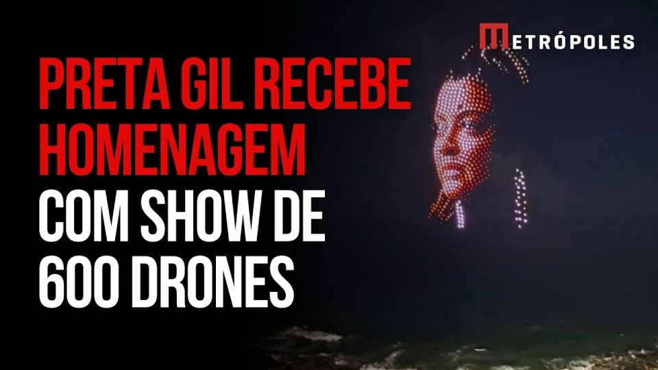 A cantora Preta Gil foi homenageada com um show de luzes e drones no Farol da Barra, neste domingo, em Salvador. Além da frase “Preta, essa festa é sua!”, seu rosto também foi projetado com um show de luzes controlado por drones.
