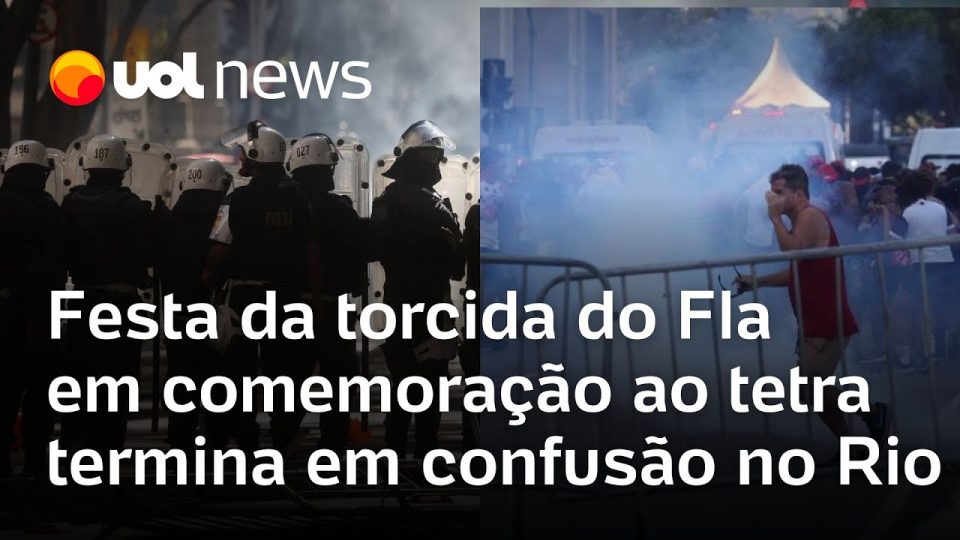 A festa pelo título do Flamengo na Libertadores tomou conta das ruas do centro do Rio de Janeiro, hoje. Os jogadores subiram em um trio elétrico e festejaram a taça conquistada ontem. No fim, aconteceu confusão entre rubro-negros e policiais militares, e houve disparos de bala de borracha e bombas de efeito moral.