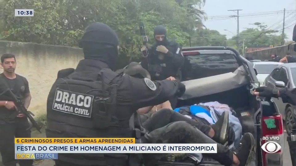 BrasilDestaquesMundoFesta em homenagem a miliciano é interrompida pela polícia do Rio de admin20/10/202508 Compartilhar0 A polícia do Rio de Janeiro interrompeu uma festa em homenagem a um miliciano no Rio de Janeiro. Seis criminosos armados que participavam do evento foram presos. #BandJornalismo #BoraBrasil source