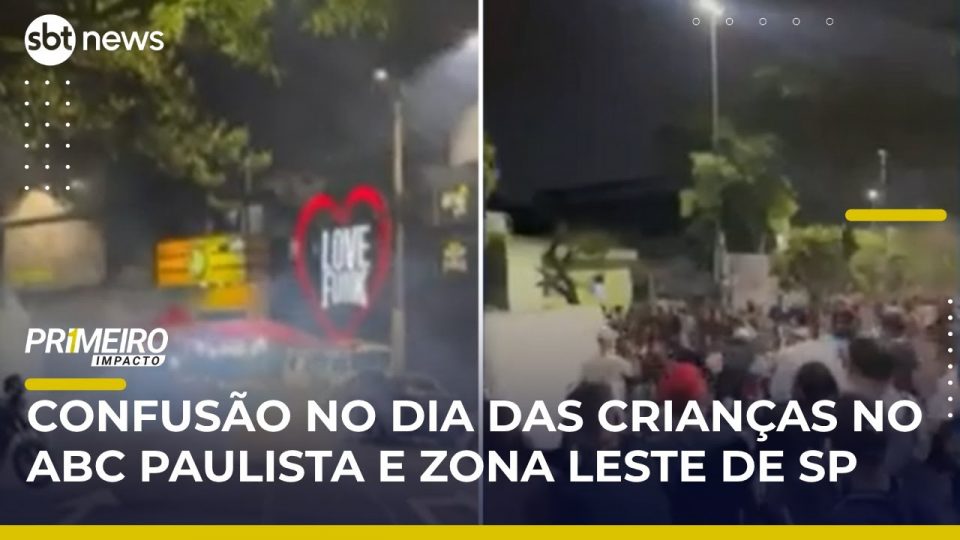 Uma festa do Dia das Crianças em São Paulo terminou em confusão, tiroteio e pancadaria. Imagens nas redes sociais mostram um policial sendo agredido ao tentar prender um motoqueiro fazendo “grau” no meio da multidão em São Bernardo do Campo, no ABC Paulista. Na zona leste, a ação da Polícia Militar durante um pancadão deixou um homem baleado. Saiba todos os detalhes no Primeiro Impacto.