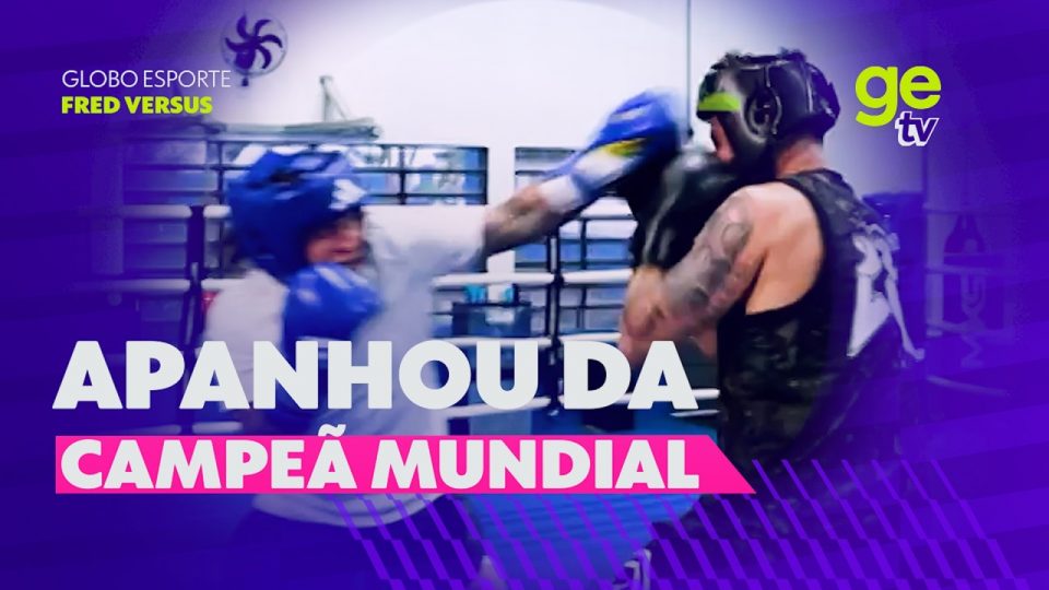 Fred Bruno achou uma boa ideia trocar socos com Bia Ferreira, boxeadora bicampeã mundial de boxe e medalhista em duas olimpíadas. Spoiler: tava cansado ainda no aquecimento.