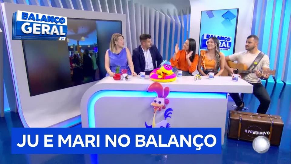 As gêmeas Ju e Mari agitam o Balanço Geral DF neste sábado (1), onde compartilharam suas experiências musicais. Começaram a cantar juntas aos 7 anos, mas decidiram seguir carreira profissional há três anos. Influenciadas por uma família musical, seu avô é autodidata no sertanejo e o pai possui raízes no rock. No entanto, as irmãs se identificam mais com o gênero sertanejo.