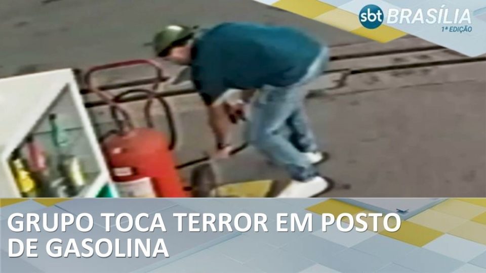 Grupo espalha gasolina, usa extintor de incêndio e assustam frentistas | SBT Brasília 1ª Edição