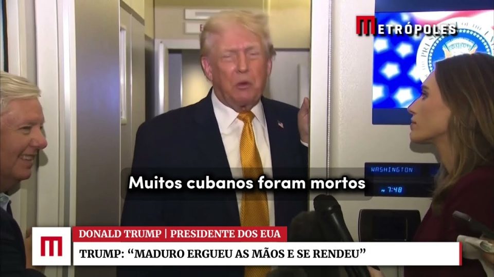 BrasilDestaquesMundoGuardas cubanos foram mortos e Maduro ergueu as mãos e se rendeu, diz Trump sobre captura de admin05/01/202605 Compartilhar0 Presidente dos EUA conversou com a imprensa no domingo (4/1) a bordo do Air Force One source