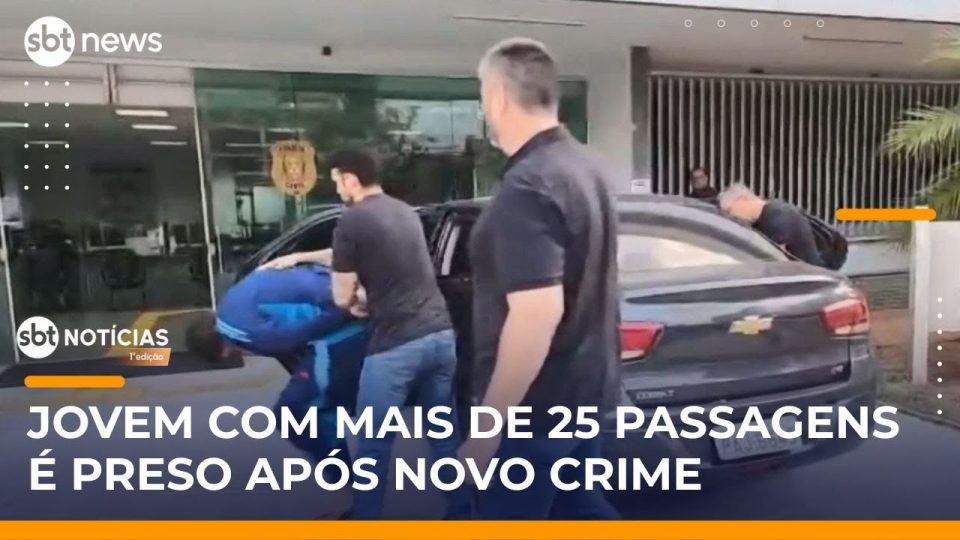 Um jovem de 20 anos, apontado pela polícia como o principal suspeito por oito arrastões em condomínios no Distrito Federal, foi preso em flagrante. O investigado é velho conhecido dos agentes, possuindo mais de 25 passagens. Saiba todos os detalhes no SBT Notícias 1ª Edição.