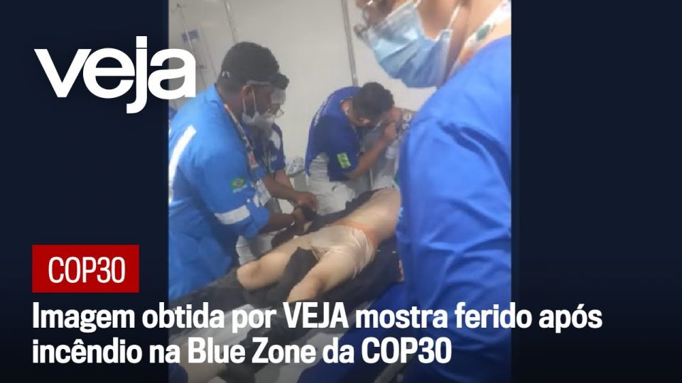 Imagem obtida por VEJA revela que houve ao menos um ferido no incêndio da Blue Zone da COP30, contrariando a informação inicial da organização, que afirmava que o episódio não havia deixado vítimas. A foto, enviada por um integrante da equipe terceirizada de segurança do evento, mostra um funcionário recebendo atendimento médico de paramédicos no local.