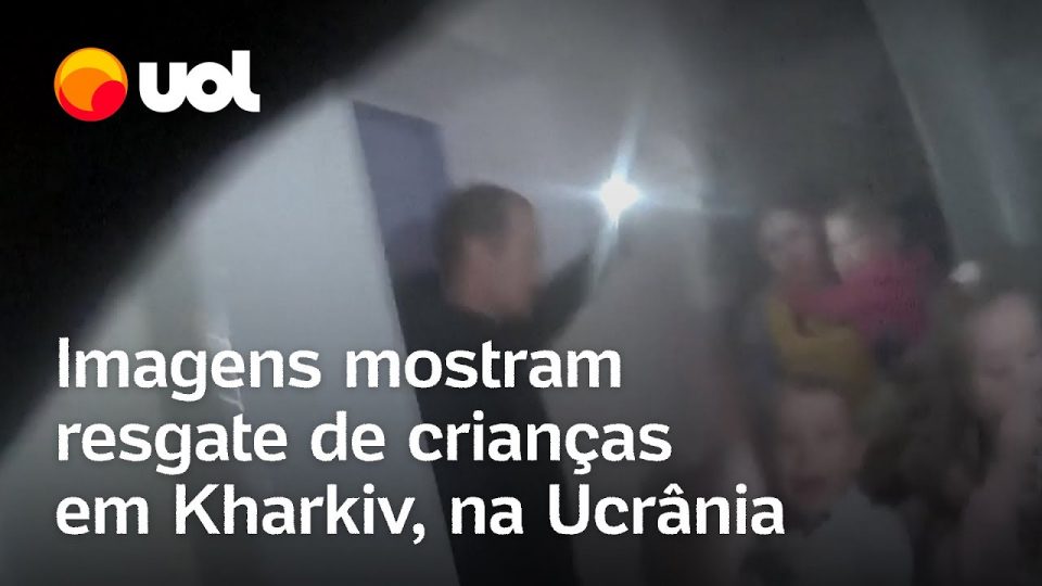 Imagens da câmera corporal de um policial mostram socorristas e civis resgatando crianças de um jardim de infância em Kharkiv, após um ataque de drone russo na última terça (22).