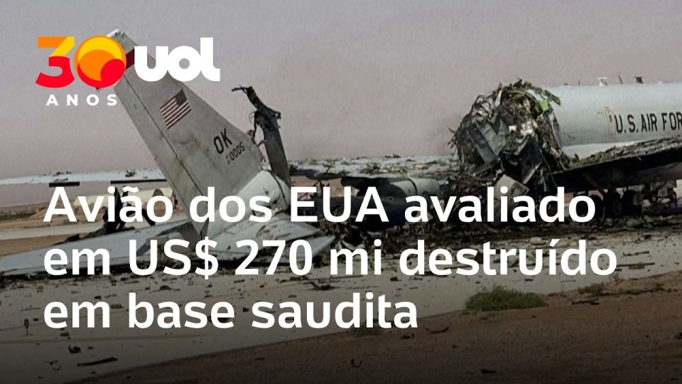 Imagens verificadas pela AFP e BBC mostram um avião de vigilância aérea dos Estados Unidos destruído na Base Aérea Príncipe Sultan, na Arábia Saudita.