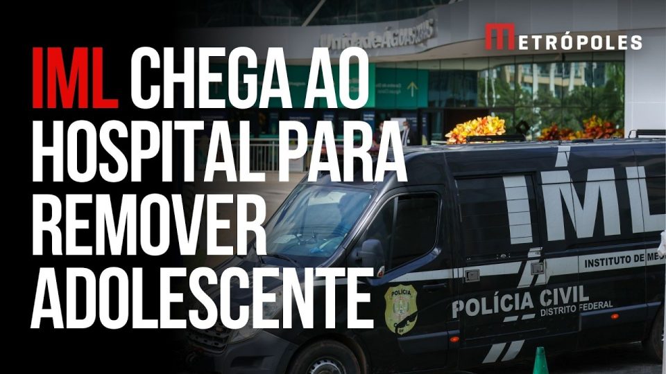 Veículo do Instituto Médico Legal (IML) chega ao Hospital Brasília, em Águas Claras (DF), para a remoção do corpo do adolescente que morreu após ter sido agredido em Vicente Pires (DF). O óbito foi confirmado pela equipe médica, e o caso segue sob investigação da Polícia Civil do Distrito Federal.
