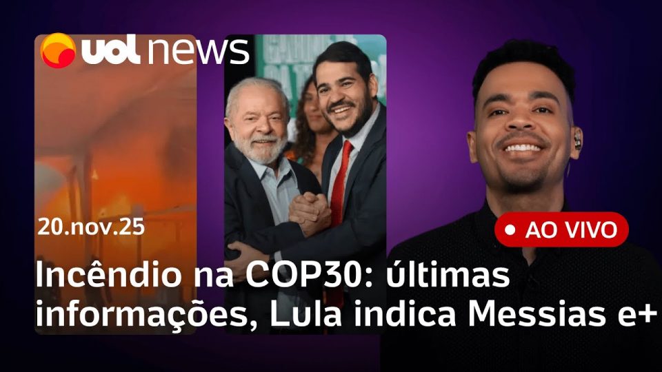 No UOL News 2ª edição desta quinta-feira (20): incêndio de grandes proporções atinge pavilhão da COP30. Lula indica Jorge Messias para a vaga de Barroso no STF e mais notícias.