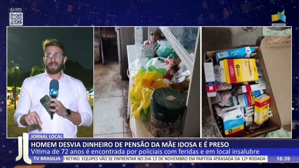 Brasília - DFCidadesDestaquesJL – Homem desvia dinheiro de pensão da mãe idosa e é preso por maus-tratos de admin12/10/2025011 Compartilhar0 10/10 – Vítima de 72 anos é encontrada por policiais com feridas e em local insalubre. — De segunda a sexta, às 18h00 TV Brasília (canal 6.1, NET 18/518) Facebook.com/jornallocal (com transmissão ao vivo) Whatsapp (61) 9 9976 7011 source