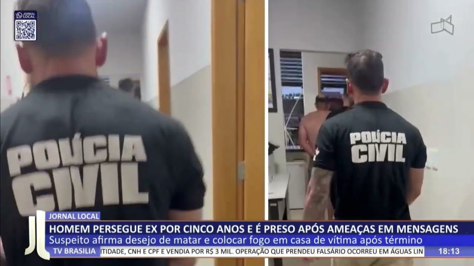 Brasília - DFCidadesDestaquesJL – Homem persegue ex por cinco anos e é preso após ameaças em mensagens de admin17/10/2025022 Compartilhar0 16/10 – Suspeito afirma desejo de matar e colocar fogo em casa de vítima após término. — De segunda a sexta, às 18h00 TV Brasília (canal 6.1, NET 18/518) Facebook.com/jornallocal (com transmissão ao vivo) Whatsapp (61) 9 9976 7011 source