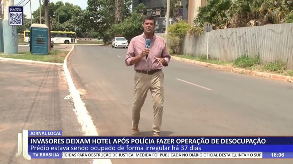 Brasília - DFCidadesDestaquesJL – Invasores deixam hotel após polícia fazer operação de desocupação de admin31/10/202506 Compartilhar0 30/10 – Prédio estava sendo ocupado de forma irregular há 37 dias. — De segunda a sexta, às 18h00 TV Brasília (canal 6.1, NET 18/518) Facebook.com/jornallocal (com transmissão ao vivo) Whatsapp (61) 9 9976 7011 source