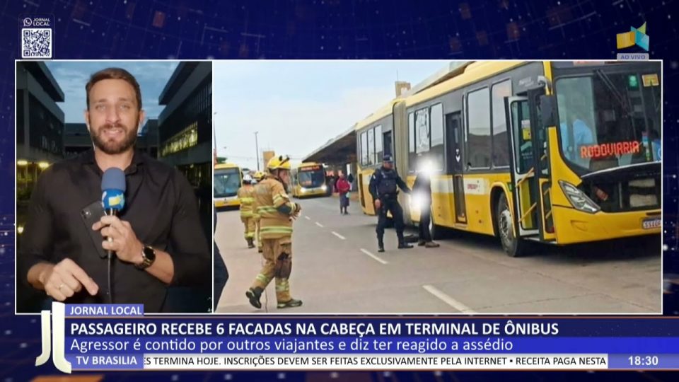 Brasília - DFCidadesDestaquesJL – Passageiro recebe 6 facadas na cabeça em terminal de ônibus de admin31/10/202506 Compartilhar0 31/10 – Agressor é contido por outros viajantes e diz ter reagido a assédio. — De segunda a sexta, às 18h00 TV Brasília (canal 6.1, NET 18/518) Facebook.com/jornallocal (com transmissão ao vivo) Whatsapp (61) 9 9976 7011 source