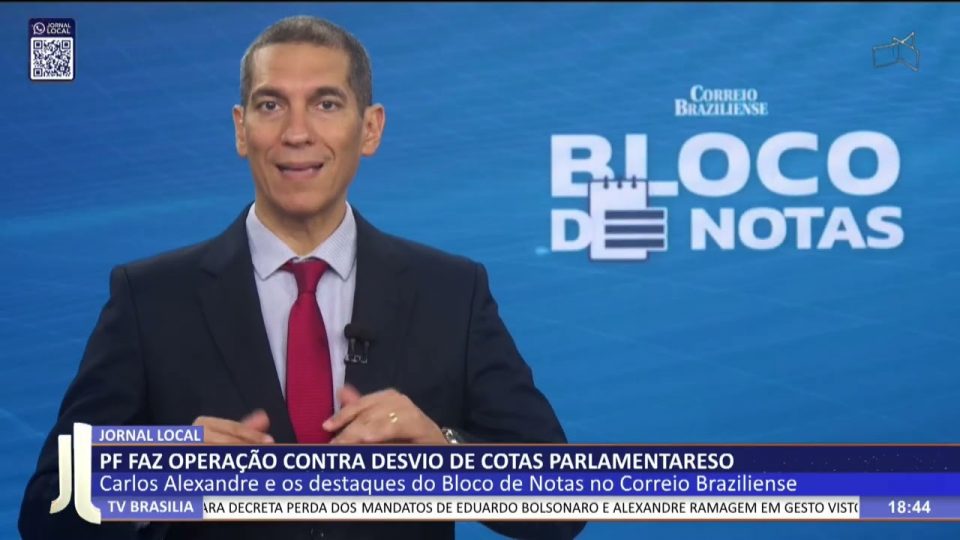 Brasília - DFCidadesDestaquesJL – PF faz operação contra desvio de cotas parlamentares de admin21/12/202505 Compartilhar0 19/12 – Carlos Alexandre e os destaques do Bloco de Notas no Correio Braziliense. — De segunda a sexta, às 18h00 TV Brasília (canal 6.1, NET 18/518) Facebook.com/jornallocal (com transmissão ao vivo) Whatsapp (61) 9 9976 7011 source