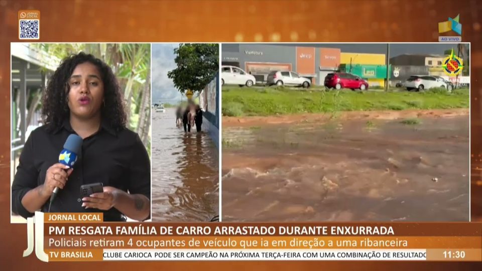 JL – PM resgata família de carro arrastado durante enxurrada
