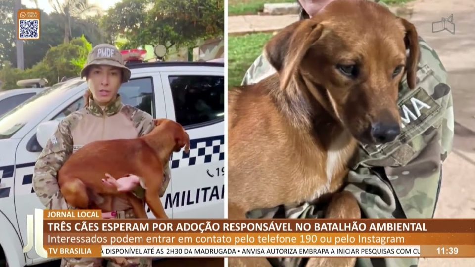 JL – Três cães esperam por adoção responsável no batalhão ambiental
