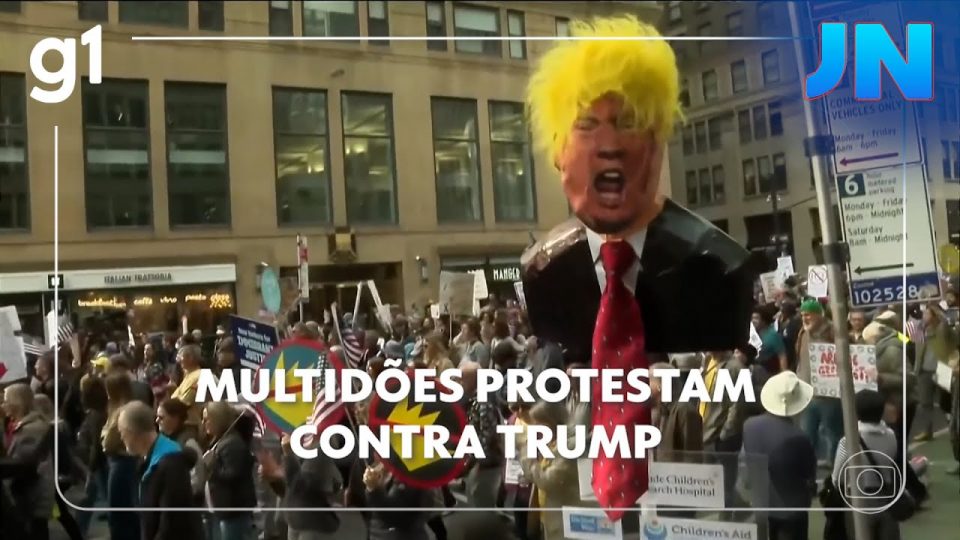 Jornal Nacional: Multidões protestam contra Trump em cidades dos EUA sob o lema ‘No Kings’
