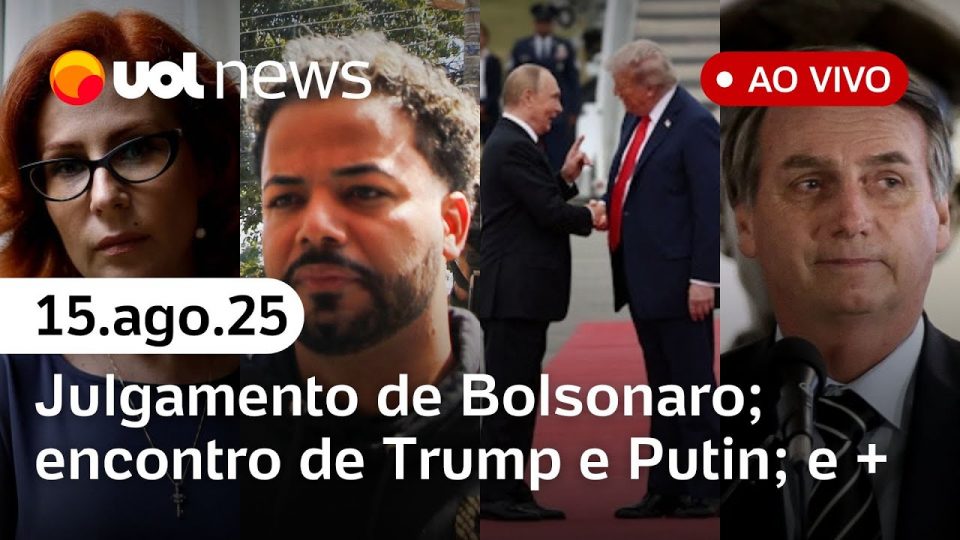No UOL News 2ª Edição ao vivo desta sexta-feira (15): STF marca para setembro julgamento de Bolsonaro e aliados; Nunes Marques é o 1º a votar a favor de Zambelli em caso de porte de arma; Felca e advogados comentam prisão de Hytalo Santos e parabenizam autoridades; Trump diz que “não ficará feliz” se Putin não concordar com cessar-fogo e mais notícias.
