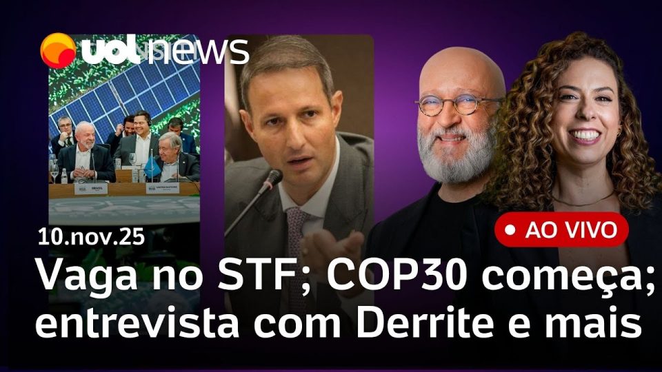 No UOL News 1ª Edição desta segunda: COP30 começa oficialmente hoje, em Belém; desabrigados vivem incerteza após tornado no Paraná; presidente Lula intensifica as conversas para indicação à vaga no STF; entrevista ao vivo com Guilherme Derrite, secretário licenciado de segurança pública de São Paulo; senadores dos Estados Unidos chegam a acordo para tentar encerrar paralisação do governo Trump e mais notícias do dia.