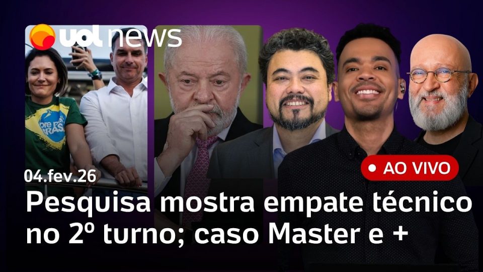 No UOL News 1ª Edição desta quarta-feira (4): Pesquisa Meio/Ideia divulgada hoje mostra que o governo Lula é avaliado como ótimo ou bom por 34,1% dos entrevistados; Perícia do Bolsonaro deve ser enviada para Moraes na quarta; próximos passos do julgamento de Bolsonaro no STM; Família Vorcaro lesa fundos de Previdência desde 2018, diz MPF e mais notícias ao vivo com DIego Sarza, Josias de Souza e Leonardo Sakamoto.
