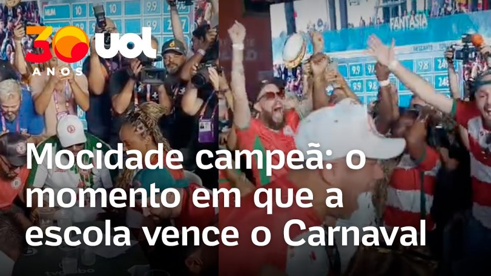 A Mocidade Alegre é a campeã do Carnaval de 2026 em São Paulo. Veja o momento em que a escola descobre que venceu o título.